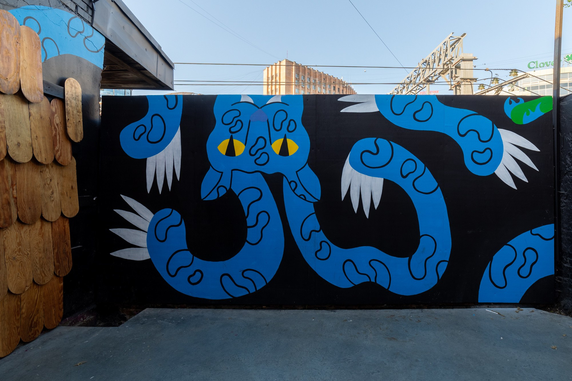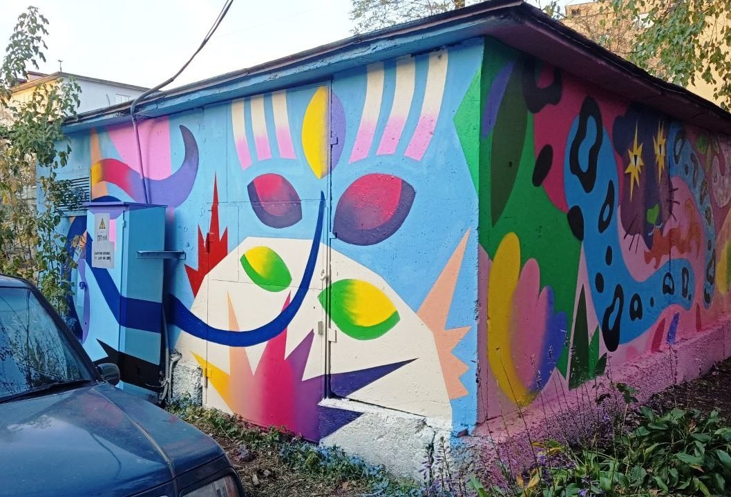 Это не то, чтобы инсталляция, но когда ты работаешь в объёме, когда изображение соразмерно человеку, когда ты в него погружаешься, вот это меня привлекало визуально. А улица появилась, потому что рисовать вот в таком объёме и размере дома невозможно. Холсты такого размера — это очень дорого. Да, и где такое рисовать? Поэтому получился вот такой выход на улицу. И это было даже не за раз, потом меня отпускало, я занималась другими вещами, потом возвращалась опять. Это происходило волнами. И в итоге меня все это, наверное, чуть-чуть затянуло.