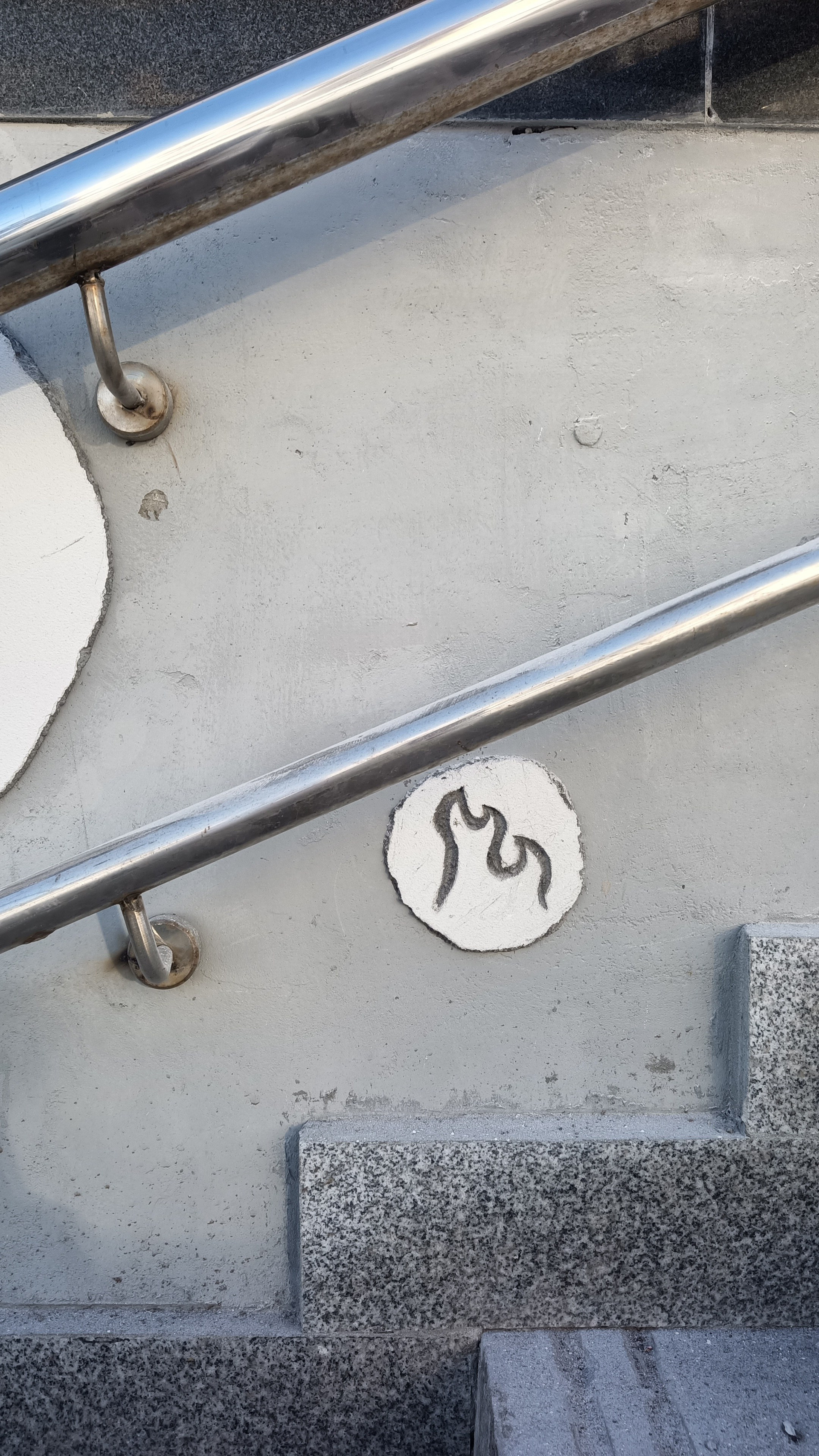 Помимо ситуативного эскапизма, у меня есть ещё тема вечного внутреннего пламени. Пока внутри человека что-то горит, он жив. Это такие маленькие огонёчки, которые я оставляю на улице. Иногда вместо подписи тоже огонёчек. Я жив, я ещё здесь вот. Это не то чтобы большая тема, просто такая штучка.