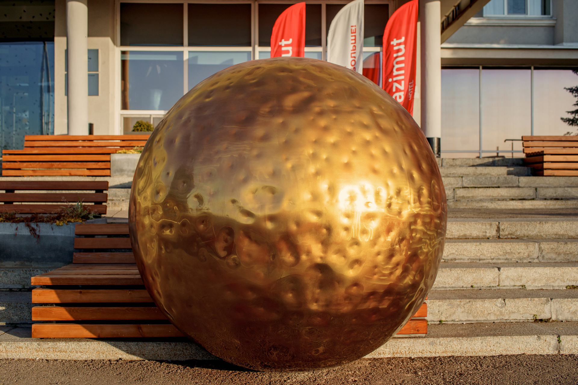 В тот же день я придумал объект, который хочу сделать. Я понял: раз с фасадной части Азимута виден закат, то рассвет остается за зданием. Я решил, что было бы здорово установить скульптуру солнца, которое сидит на лавочке и ждет собственного восхода. Теперь на солнце можно будет посмотреть в любое время дня, присесть рядом и может быть даже дождаться собственного рассвета.